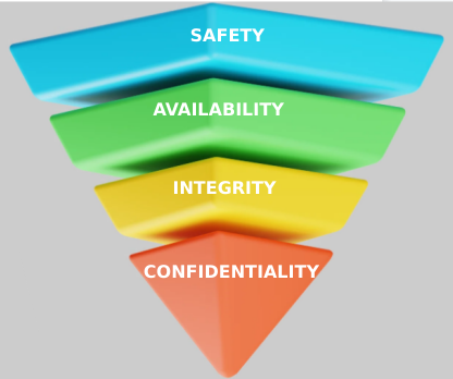 In contrast, the OT domain typically reverses this order and places the utmost importance on Safety as the primary concern. This leads to a Safety, Availability, Integrity, Confidentiality (SAIC) model for OT. Here, Availability (ensuring continuous operation of critical industrial processes) takes precedence after safety, followed by Integrity (maintaining the correct functioning of industrial controls), and finally Confidentiality (protecting sensitive operational data). This shift in focus reflects the critical need to protect human lives and ensure continuous industrial operations, as compromised OT systems can have direct physical consequences, unlike many IT breaches.